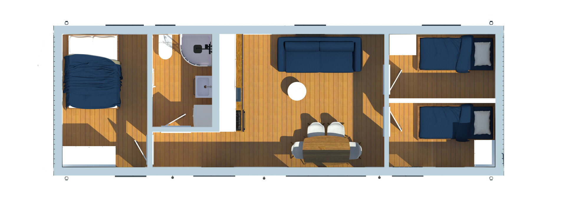 Every home comes with a complete bathroom, supplied with all pieces of equipment. To make sure the home is fully useful, you only need to connect utilities.